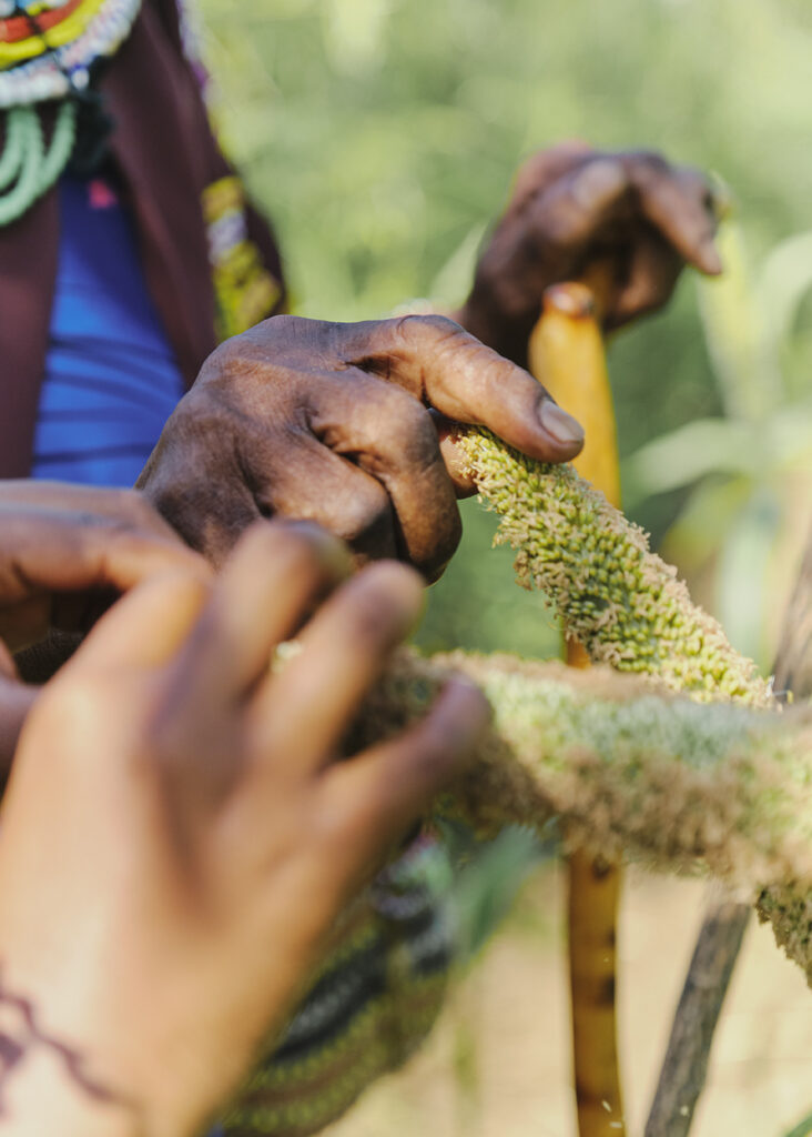 MASHUDU: The VhaVenda people, to whom I belong, are allocated responsibilities by the ancestors or the Creator. My mother is a traditional healer, and her role involves specific dances, or specific rituals, which are performed using some of the seeds that custodians are responsible for providing — in this case, small grains that we call millet, which are also turned into a traditional beer.