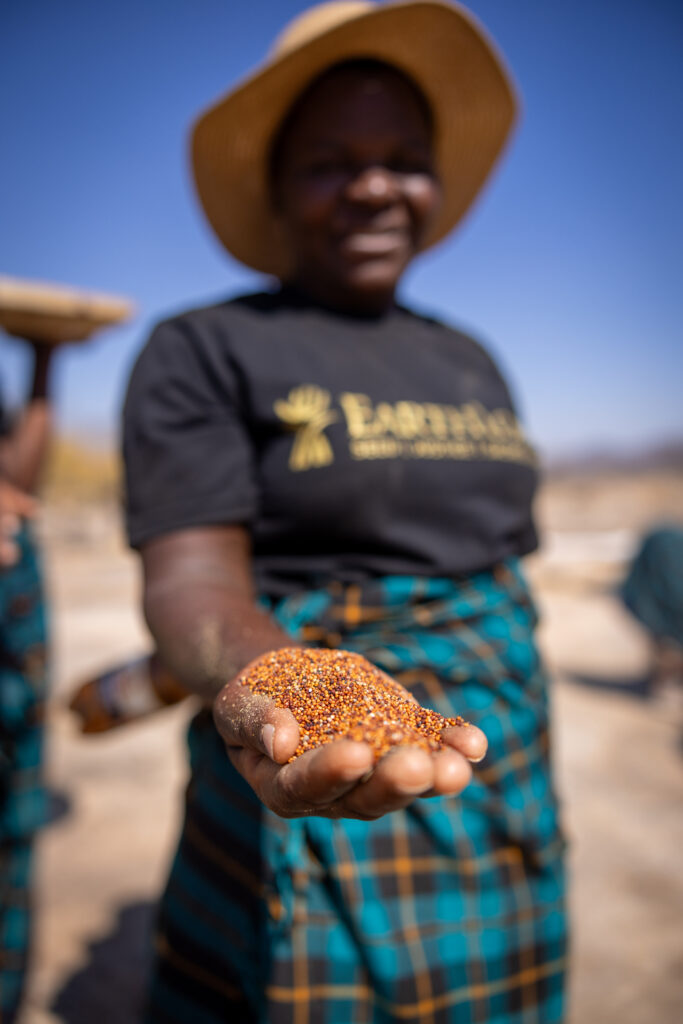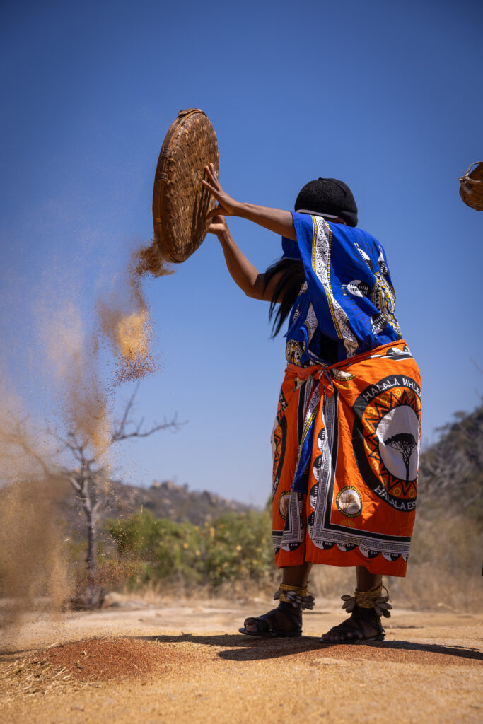 Traditional crops require the time and energy of an entire community to thresh and winnow, in comparison to the “modern” hybrid maize introduced by Zimbabwe’s government from the 1940s. But in Bikita, that maize has been failing year on year, unable to withstand the dry weather that is typical of the region and becoming more extreme due to climate change. People are left reliant on food aid.