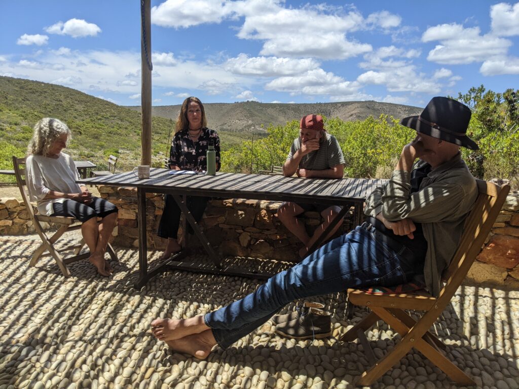 The vision for the training was to weave together a range of experiences, materials and practices for participants to explore and embody. The beautiful fynbos landscape of Towerland in South Africa became the home for regular retreats thanks to custodians, Allan Kaplan and Sue Davidoff of Proteus Initiative.